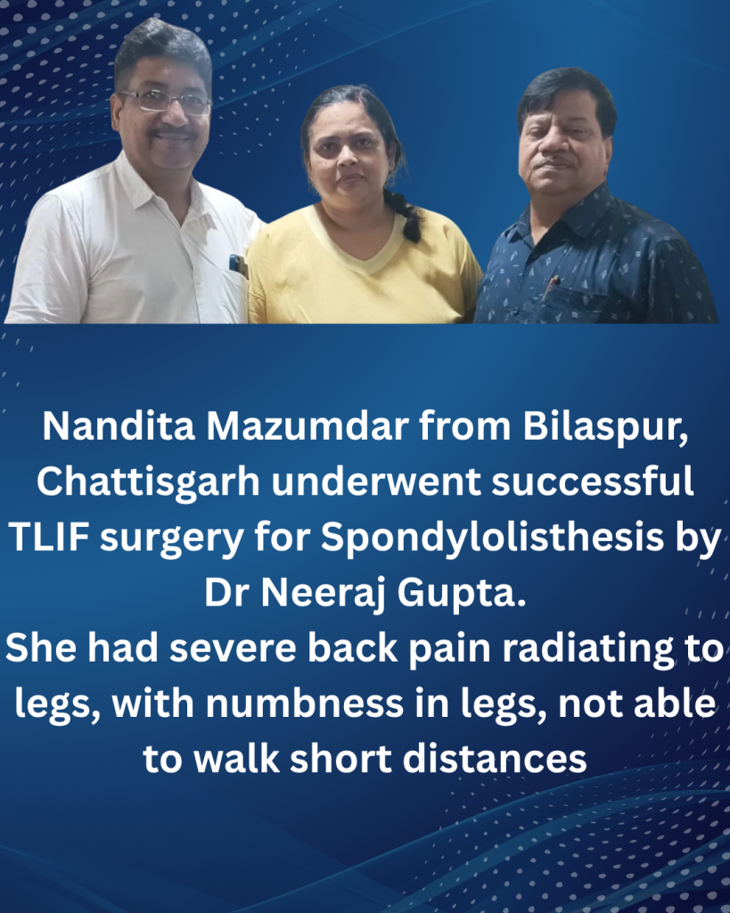 My wife was diagnosed with Potts Spine in Cervical. I consulted Dr. Neeraj Gupta in a very critical position in Feb 2023 and his expert care was a game-changer for my wife Pott's spine recovery. His knowledge and compassion were evident in every step of the treatment. Grateful for his exceptional care and positive impact on our lives. Highly recommend.