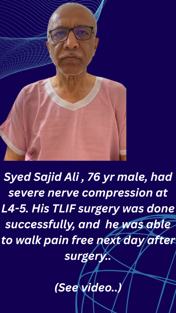 Dr. Neeraj Gupta treats spinal abnormalities like instability and disc issues with transforaminal lumbar interbody fusion (TLIF) surgery. This procedure is commonly done in patients with lumbar canal stenosis and Spondylolisthesis.